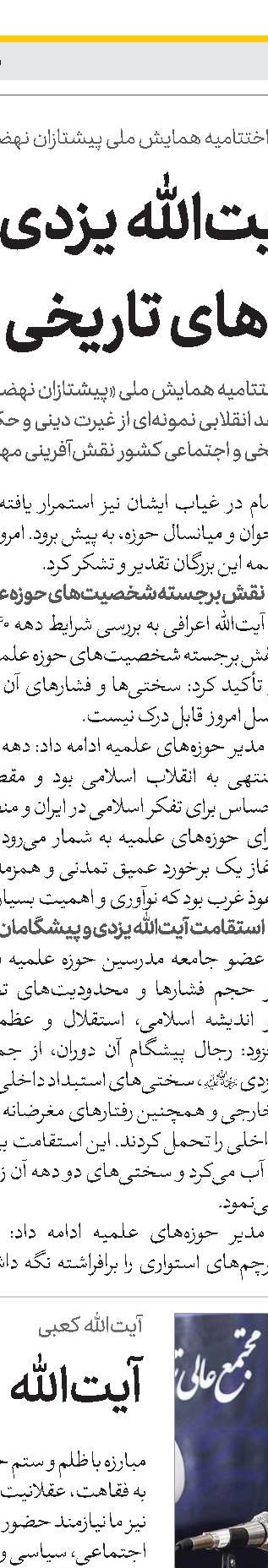 معرفی شخصیتهایی مانند آیتالله یزدی(ره) برای جامعه دینی و حوزوی ضروری است
