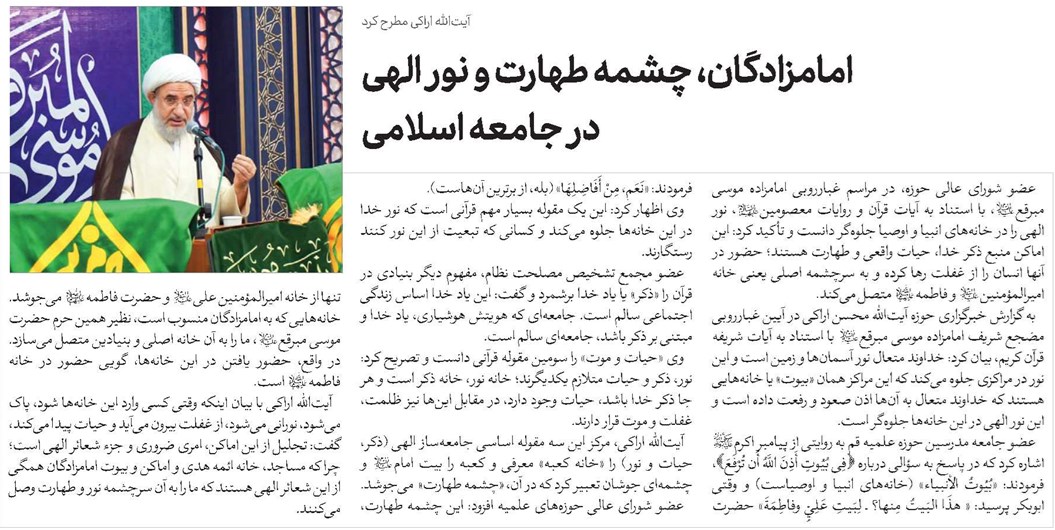 عضو شورای عالی حوزه، در مراسم غبارروبی امامزاده موسی مبرقع(ع)، با استناد به آیات قرآن و روایات معصومین(ع)، نور الهی را در خانههای انبیا و اوصیا جلوهگر دانست و تأکید کرد: این اماکن منبع ذکر خدا، حیات واقعی و طهارت هستند؛ حضور در آنها انسان را از غفلت رها کرده و به سرچشمه اصلی یعنی خانه امیرالمؤمنین(ع) و فاطمه(س) متصل میکند.
