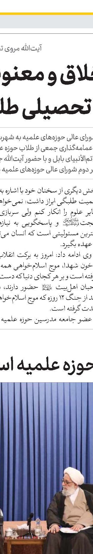 این مرجع تقلید گفتند: طلاب باید در کنار تحصیل، تمرین گویندگی داشته باشند تا در مواقع لازم، بتوانند منبر بروند و در جلسات تخصصی حوزه بهخوبی اظهارنظر کنند.