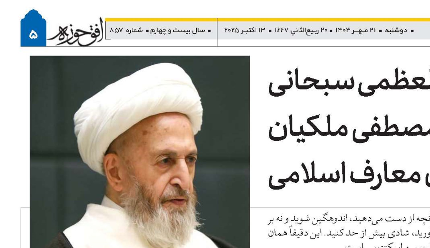 در دعای آغازین خطبه ۷۲ نهجالبلاغه، امام علی(ع) خداوند را «داحی المدحوات» میخواند؛ صفتی که بر گسترش هر آنچه قابلیت بسط دارد - از زمین تا نعمتهای الهی - دلالت میکند. شاخصترین مصداق، «علم» است: حقیقتی الهی بدون حد که با توفیق خداوند بر دانایی انسان افزون میشود. قرآن نیز وعده میدهد: «لَئِنْ شَکَرْتُمْ لَأَزِیدَنَّکُمْ»؛ شکر، علم و نعمت را توسعه میبخشد. در مقابل، دلبستگی دنیوی تنگی میآورد. این سنت، الگویی برای آغاز سال تحصیلی است: علم، همچون معنویت و صبر، با اراده الهی گسترش مییابد. عالمان، وارثان انبیا، موظفاند حق را با حق ابلاغ کنند، باطل را دفع نمایند و راه هدایت را بیکموکاست روشن سازند. امام خمینی(ره) نمونهای از این تعهد است. بر ماست که با همت علمی، در طلب رضای الهی، پیشقدم شویم و علم را چون چراغی برای هدایت دلها برافروزیم. آیتالله محمدجواد فاضل لنکرانی در اولین جلسه درس خارج فقه و اصول سال تحصیلی 1405و۱۴۰۴ بهمناسبت میلاد فرخنده پیامبر اکرم(ص)، با بررسی و تفسیر خطبه هفتاد و دوم نهجالبلاغه (با عنوان «کیفیت تعلیم صلوات بر پیامبر»)، نکاتی در خصوصِ خاتمیت نبوی، گشایشگری رسالت، اعلان حق به حق، دفع هیاهوی باطل و درهمشکستن صولت ضلالت، نمونه تعهد امام خمینی(قد) در مقابله با انحرافات، حمل رسالت با استقامت، شتاب و پیشقدمی و...اشاره نمود که بدین شرح میباشد. امام علی(ع) در آغاز خطبه میفرماید: «اللَّهُمَّ دَاحِيَ الْمَدْحُوَّاتِ». واژه «داحی» از ریشه «دَحْو» است؛ همان ریشهای که در «دحوُالأرض» بهمعنای گستردهشدن زمین از دل آب بهکار رفته. «المدحوات» جمع «مَدْحُوّة» است و به هر آنچه قابلیت بسط و گسترش دارد، اطلاق میشود. گرچه برخی ترجمهها آن را به «زمین» محدود کردهاند؛ اما ظاهر کلمات، شمول هر پدیدهای با استعداد توسعه را نشان میدهد.