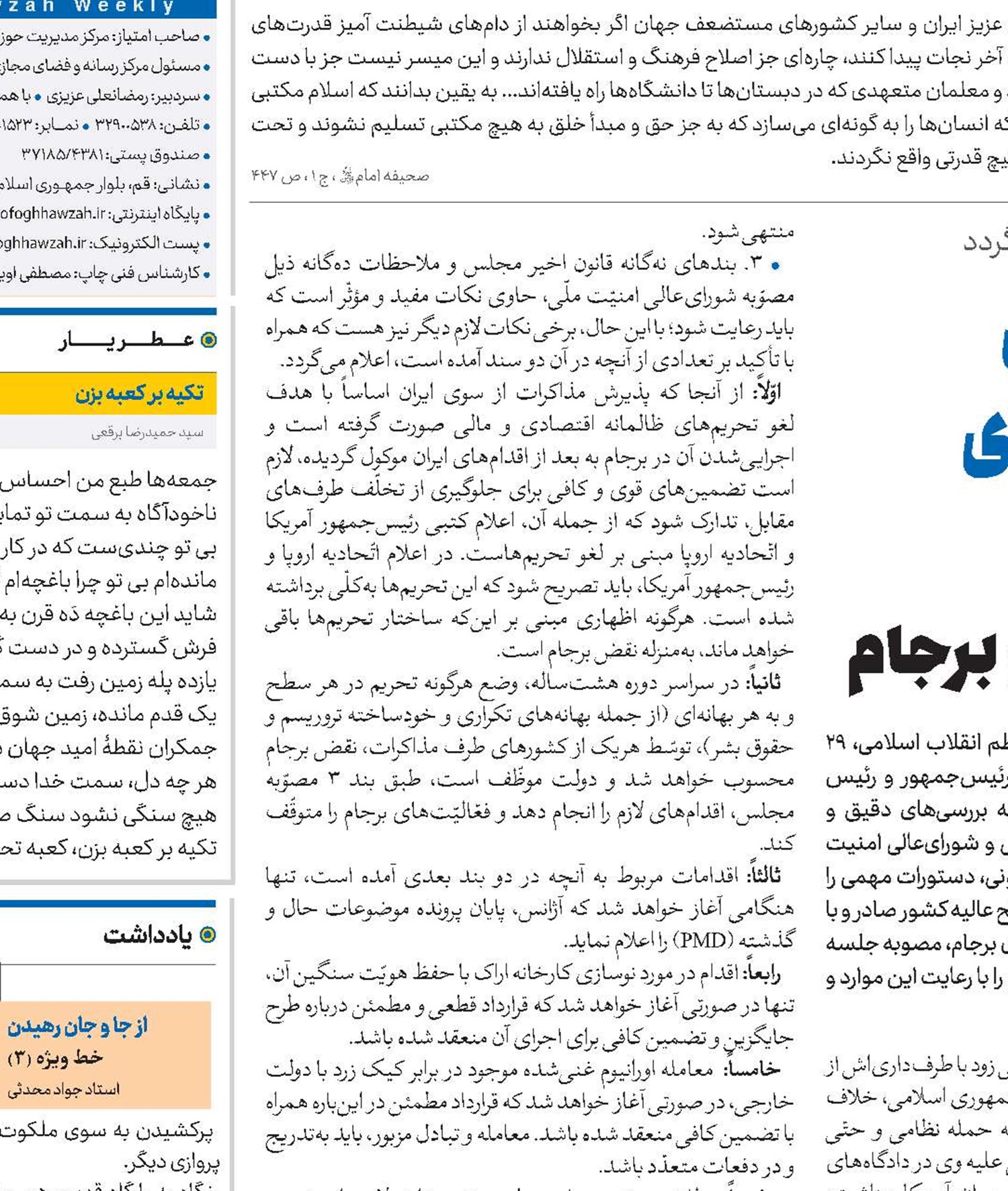 نامه تاریخی امام خامنهای در خصوص الزامات اجرای برجام