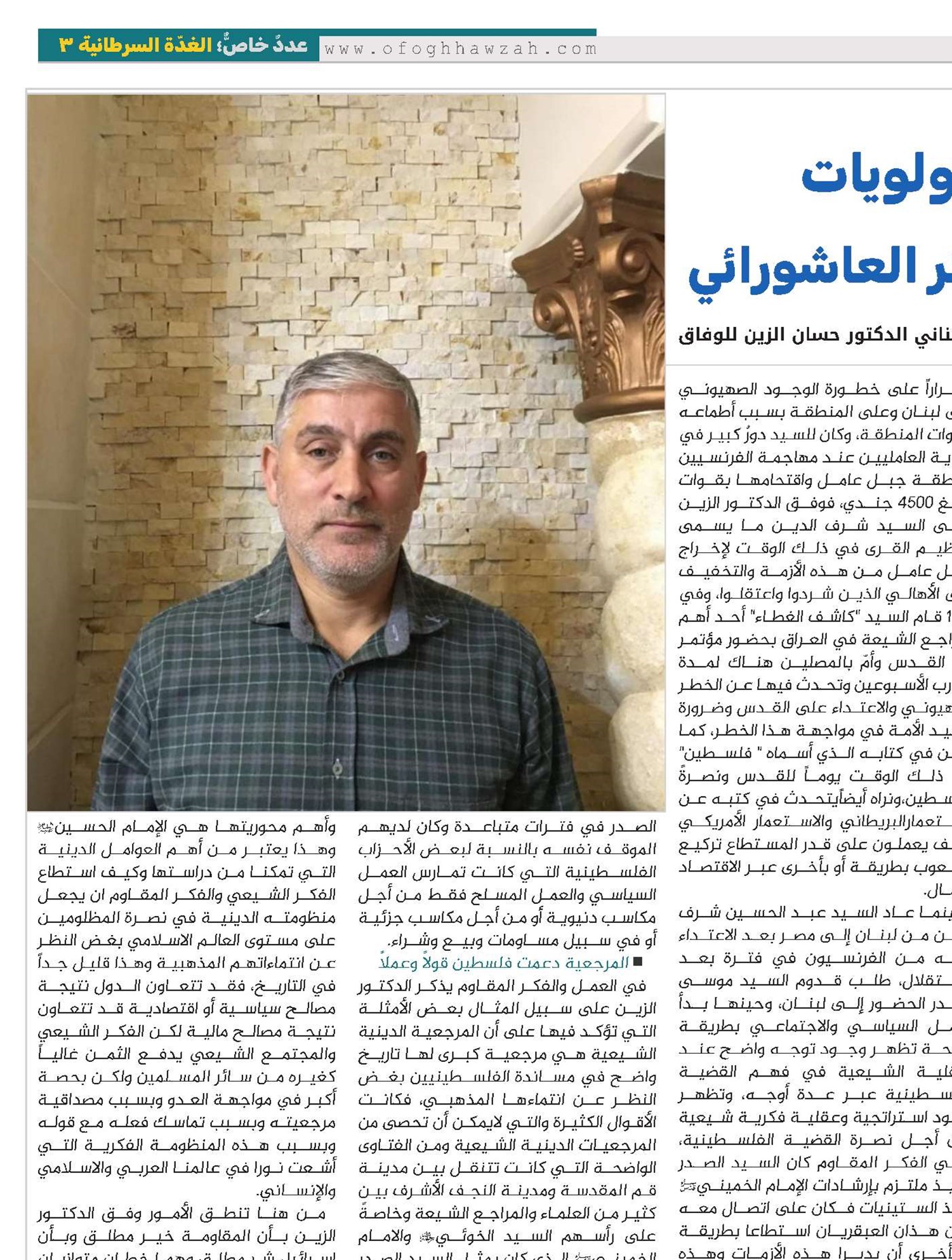 إنّ موقف المرجعية الدينية كان ولا يزال خصماً لداً للصهاينة، وقد صدرت عنه البيانات والرسائل والمواقف والأقوال التي تدعو إلى مقارعة العدو الصهيوني، إن ملاحظة العبارات والأقوال والتوصيفات الواردة على لسان زعماء المرجعية الدينية الشيعة حول كيان الاحتلال الغاصب ومواقفها ستًبين حقيقة الموقف الصلب الذي اتخذته المرجعية الدينية من الاحتلال الصهيوني للأراضي الفلسطينية، إنّ مواقف المرجعية الشيعية أصيلة، غير قابلة للتبديل، لأنها نابعة من تعاليم الإسلام الذي يرفض الظلم والعدوان واحتلال أراضي المسلمين أو مهادنة المستعمرين، ومنطلقها الرئيسي ثورة عاشوراء الإمام الحسين(ع)، وللتوسع حول هذا الموضوع حاورت صحيفة الوفاق الكاتب اللبناني الدكتور حسان الزين، وكان الحوار التالي: