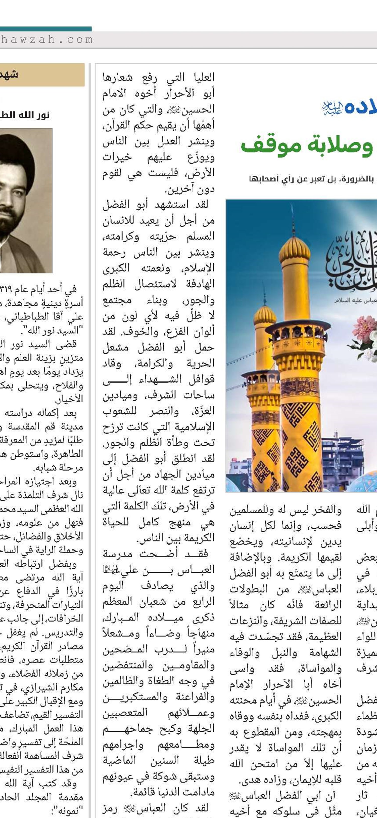 فقد أضحت مدرسة العباس بن علي (ع) والذي يصادف اليوم الرابع من شعبان المعظم ذكرى ميلاده المبارك، منهاجاً وضاءاً ومشعلاً منيراً لدرب المضحين والمقاومين والمنتفضين في وجه الطغاة والظالمين والفراعنة والمستكبرين وعملائهم المتعصبين الجلهة وكبح جماحهم ومطامعهم واجرامهم طيلة السنين الماضية وستبقى شوكة في عيونهم مادامت الدنيا قائمة.