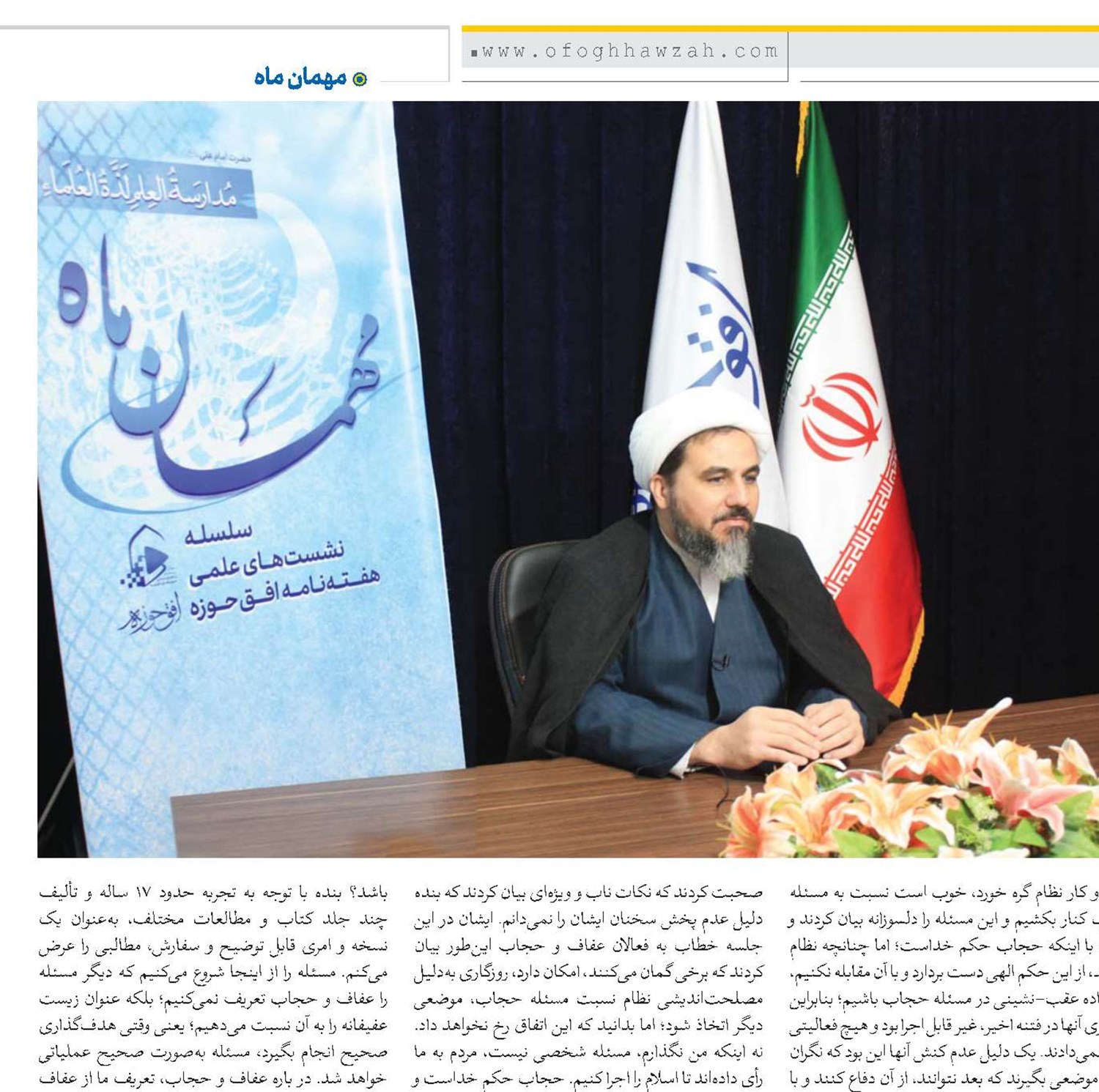 حجتالاسلام والمسلمین مهدی بیاتی، مدیر مؤسسه طهورا و از کارشناسان عرصه عفاف و حجاب با حضور در هفتمین نشست علمی برنامه «مهمان ماه» هفتهنامه افق حوزه، به برخی از سؤالات مربوط به عفاف و حجاب پاسخ گفت که در ادامه میآید.