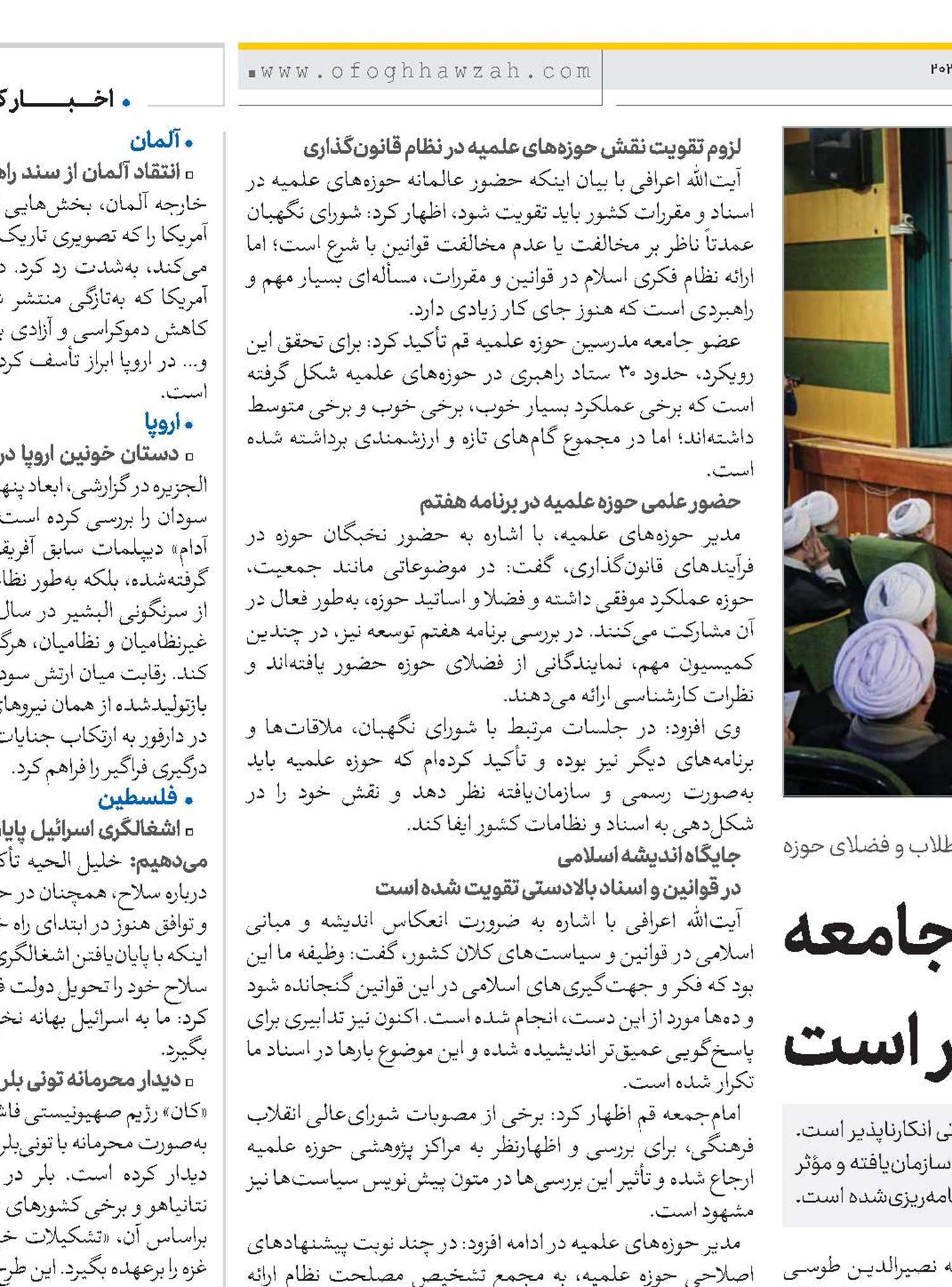 کنشگری حوزه در بدنه فکری جامعه و نظامات کشور ضرورتی انکارناپذیر است