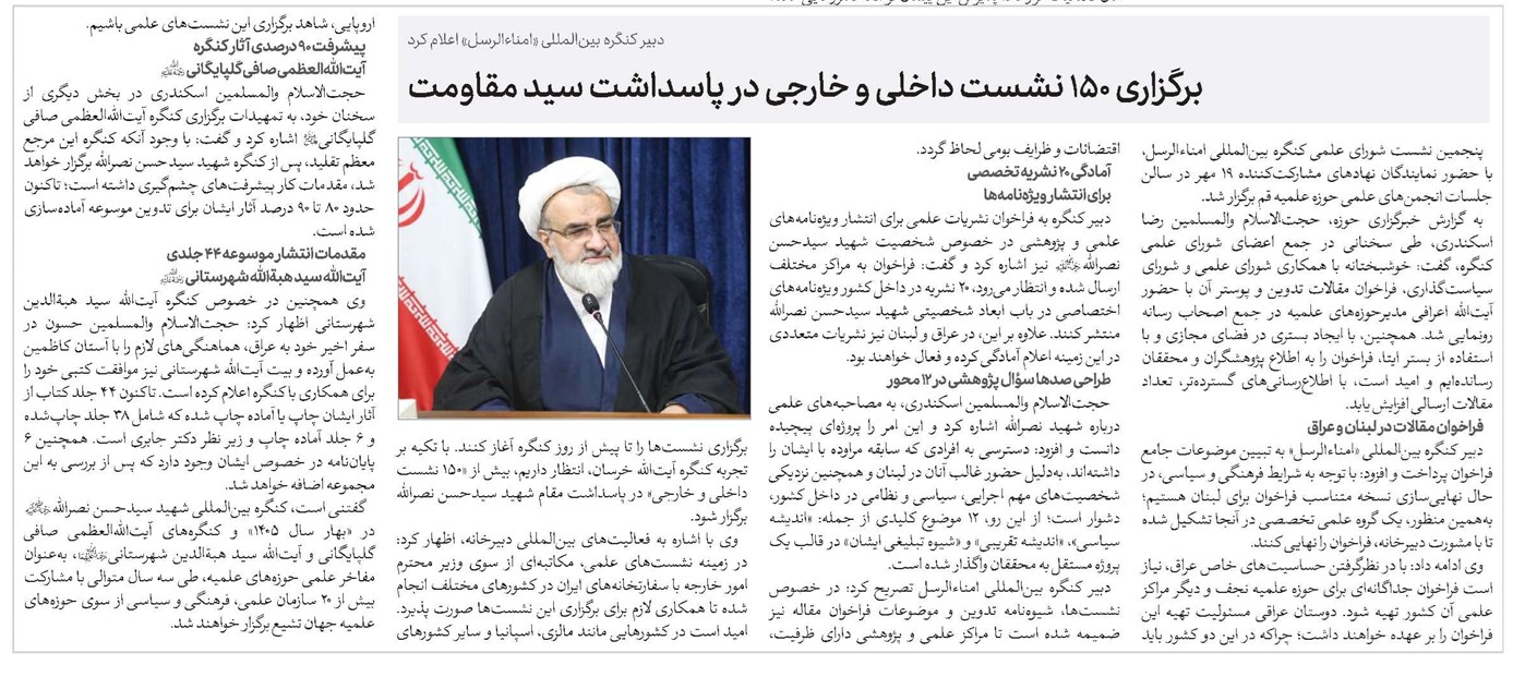 برگزاری ۱۵۰ نشست داخلی و خارجی در پاسداشت سید مقاومت