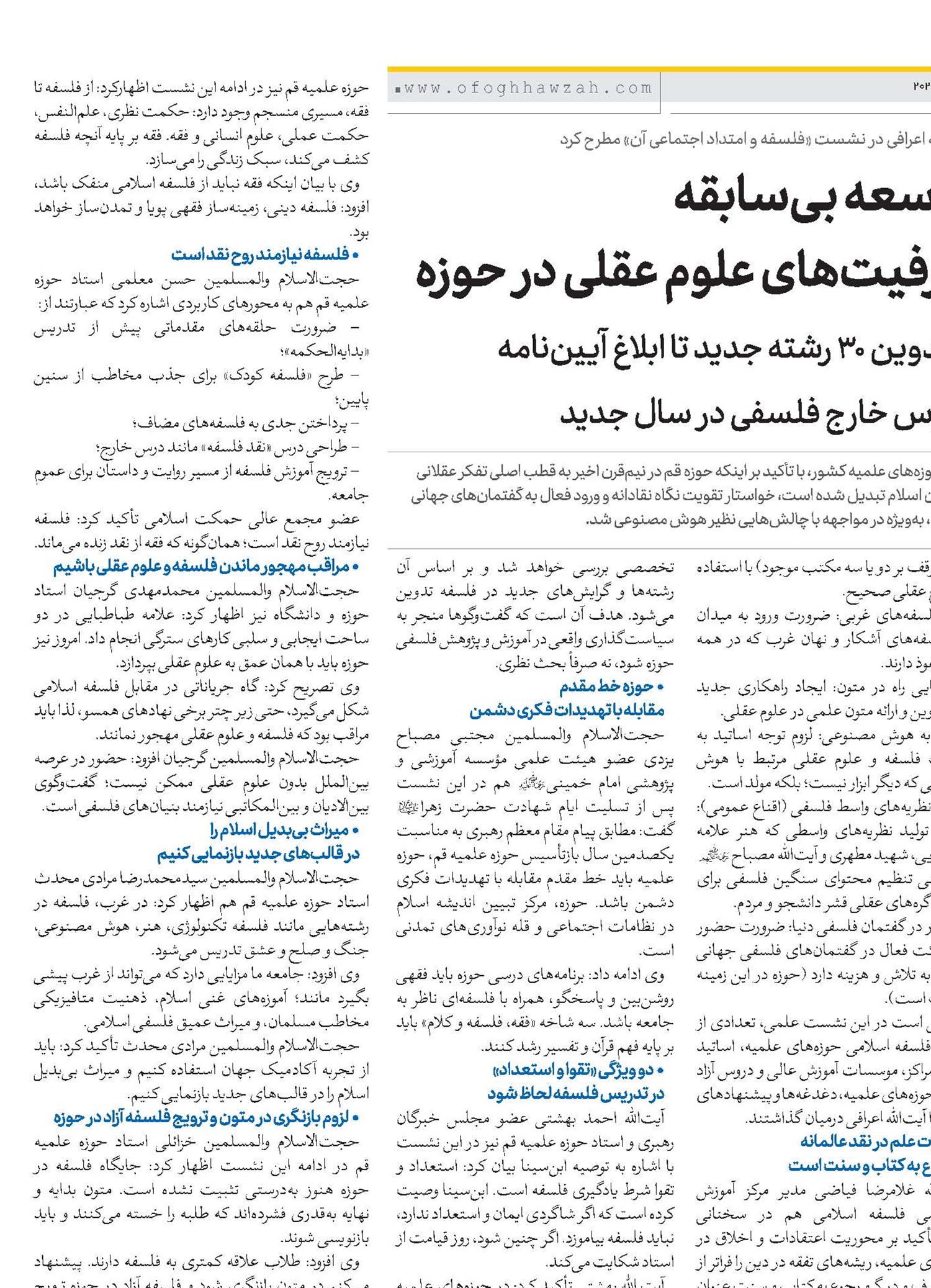 مدیر حوزههای علمیه کشور، با تأکید بر اینکه حوزه قم در نیمقرن اخیر به قطب اصلی تفکر عقلانی در جهان اسلام تبدیل شده است، خواستار تقویت نگاه نقادانه و ورود فعال به گفتمانهای جهانی فلسفی، بهویژه در مواجهه با چالشهایی نظیر هوش مصنوعی شد.