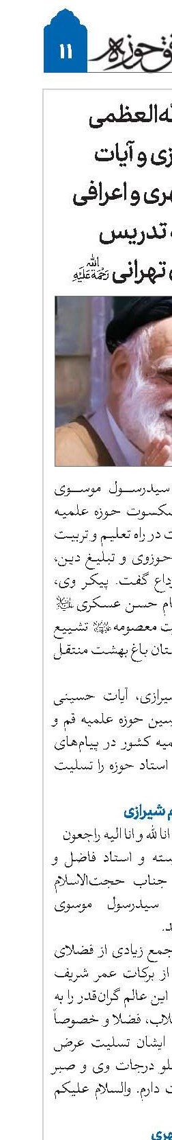 تقدیر آیتاللهالعظمی مکارم شیرازی و آیات حسینی بوشهری و اعرافی از چند دهه تدریس استاد موسوی تهرانی(ره)