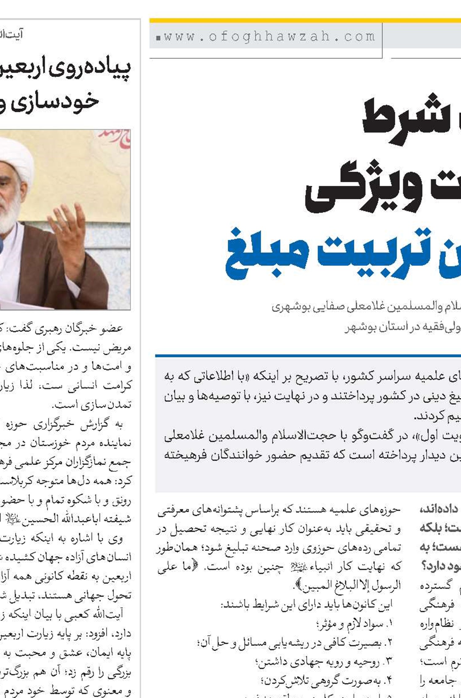 گفتوگو با حجتالاسلام والمسلمین غلامعلی صفایی بوشهری امام جمعه و نماینده ولیفقیه در استان بوشهر